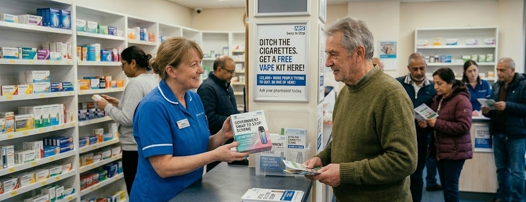 The “Swap to Stop” initiative was introduced in December 2023 as part of the UK Government’s strategy to reduce smoking rates. The programme aims to encourage smokers to switch away from cigarettes by offering free vape starter kits alongside support to help them quit.
