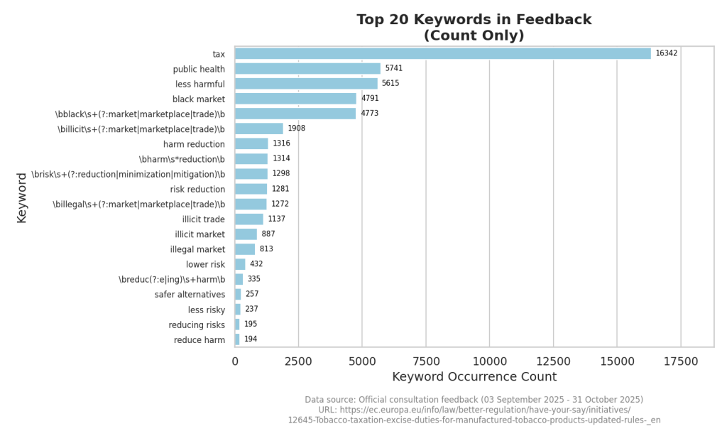 Según Impact Unfiltered, algo menos de 90 «ONG sanitarias» respondieron a la consulta. Introdujimos las respuestas de las 89 ONG que respondieron en un LLM y sólo 41 de ellas apoyan acríticamente la postura absolutista de la Comisión. 26 cuestionan el enfoque de la Comisión (muchas prefieren la reducción de daños), y 21 no lo tienen claro. ¿Significa eso que la mitad de estas ONG sanitarias también están controladas de algún modo por las Grandes Tabacaleras?