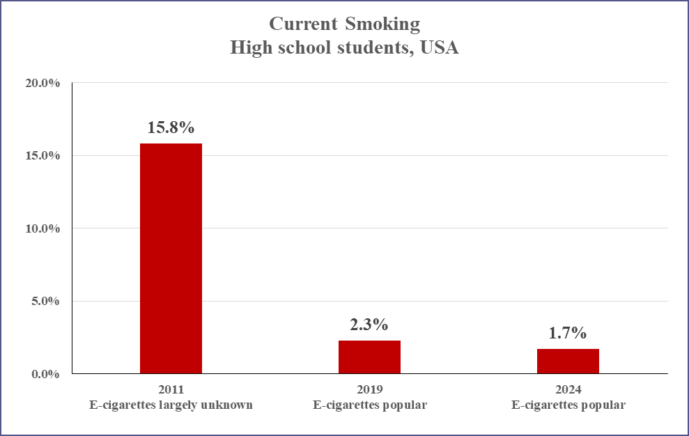 Les statistiques montrent que les taux de tabagisme chez les jeunes ont fortement diminué avec la généralisation du vapotage, ce qui contredit la thèse de la porte d’entrée au niveau de la population.