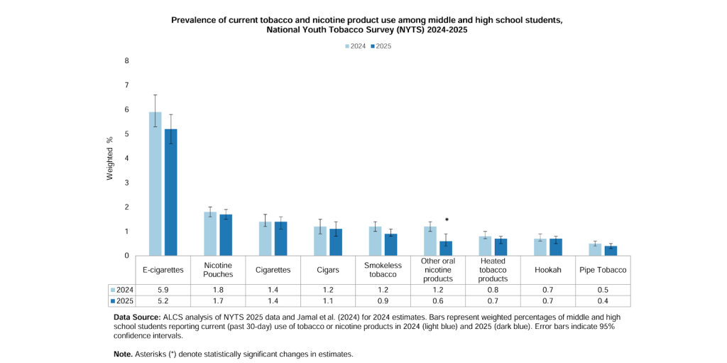 Le cifre si basano sull’analisi dei dati del National Youth Tobacco Survey 2025, resi pubblici da Altria Client Services. L’analisi ufficiale della CDC/FDA dei dati del NYTS 2025 non è ancora stata pubblicata.